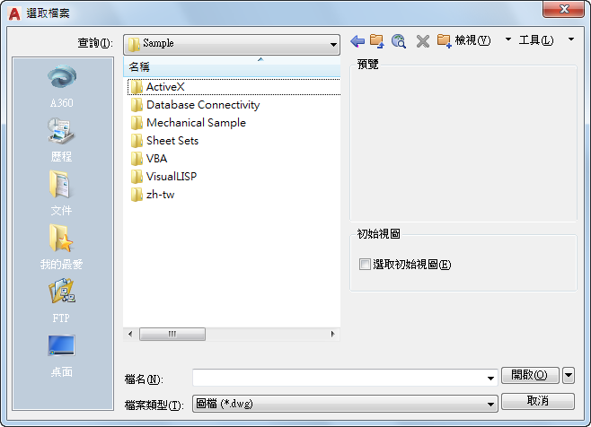 在對話方塊中選擇「視圖」「預覽」後,會顯示所選檔案的點陣圖。若要在儲存圖檔時也儲存點陣圖,請使用「選項」對話方塊中「開啟與儲存」頁籤上的「儲存縮圖預覽影像」選項。