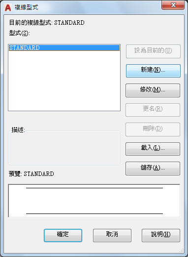 顯示「建立新複線型式」對話方塊,您可以在其中建立新複線型式。