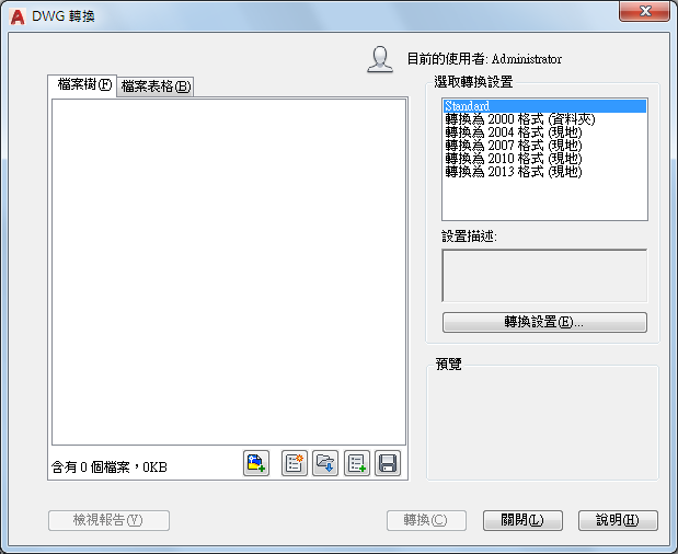 清除所有圖面的清單以便您選取要轉換圖面的新清單。如果清單已變更,則會提示您儲存目前清單。