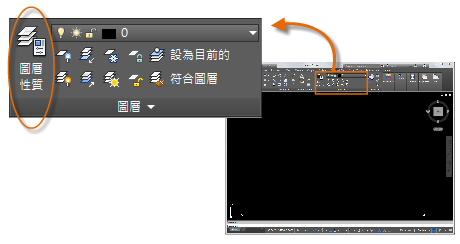 若要查看如何組織圖面,請使用 LAYER 指令以開啟「圖層性質管理員」。您可以在指令視窗中輸入 LAYER 或 LA,或者您可以按一下功能區上的「圖層性質」工具。