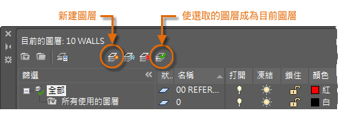 圖層可組織圖面,使您可以暫時抑制不需要的圖形資料顯示。您也可以指定預設性質,例如每個圖層的顏色與線型。