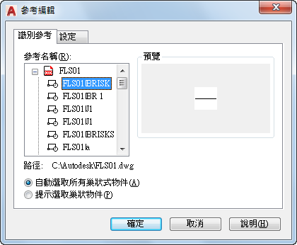 顯示所選參考的檔案位置。如果是一個圖塊,將不會顯示任何路徑。