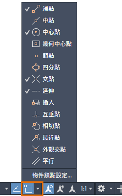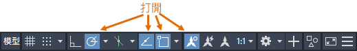 | 物件鎖點 | 打開與關閉物件鎖點。 |