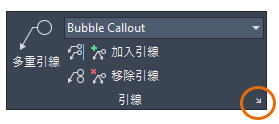 - 在「引線」面板的左側按一下「多重引線」工具列。