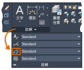 您也可以如圖所示從「註解」頁籤的「引線」面板直接執行此作業。