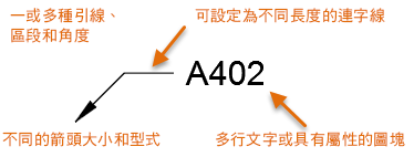- 透過多重引線型式可以存取不同類型的標示和圖說