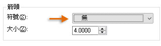 - 在「引線格式」頁籤上,對箭頭符號選擇「無」。