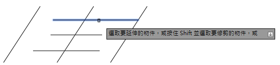 在指令視窗或動態輸入方塊中鍵入 ex (EXTEND 指令),然後按 Enter。