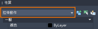 - 按一下剛才加入的拉伸動作圖示,讓其性質顯示在「性質」選項板中。