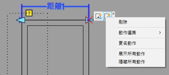 - 動作。動作定義當操控動態圖塊參考幾何圖形的掣點時,幾何圖形會如何移動、拉伸或變更。