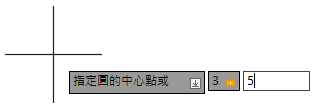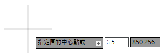 絕對座標值 3.5,5 是當作圓的中心點,而 CIRCLE 指令的下一個提示會顯示在「動態輸入」工具提示中。 註: 您可以鍵入逗號,然後輸入 Z 座標值的數字,而不要按 Enter 指定 2D 座標值。