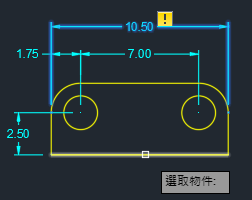 例如,黃色徽章表示此圖面有兩個標註,這兩個標註與它們測量的幾何圖形沒有關聯。