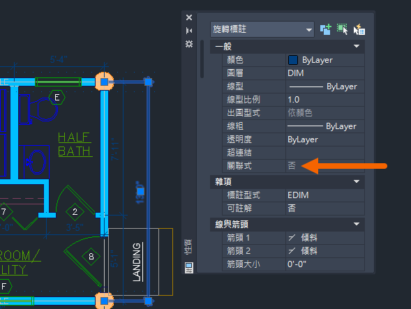 當註解監控關閉時,則不會顯示標註是關聯式標註或非關聯式標註的視覺指標。您可以使用「性質」選項板或 LIST 指令來確認標註的狀態。
