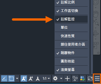 如果您沒有看到「註解監控」狀態列按鈕,請按一下狀態列最右端的「自訂」