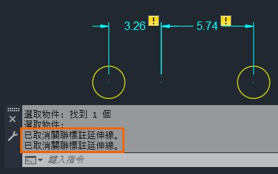 標註變為分離時,AutoCAD 會在指令提示下通知以下其中一則訊息: