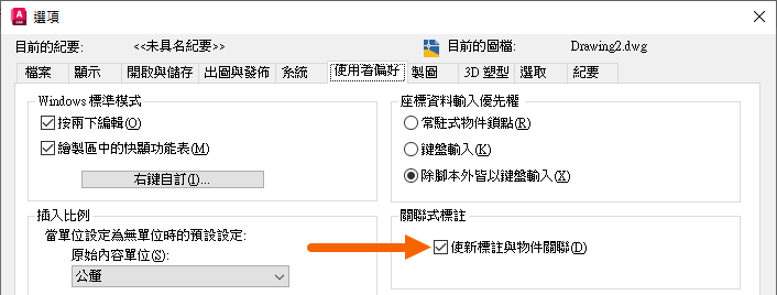所有新標註預設都是關聯式的。這可在「選項」對話方塊中變更。