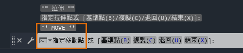 指令提示會指出目前模式。您可以移動游標以確認模式。最後您會回到拉伸模式。