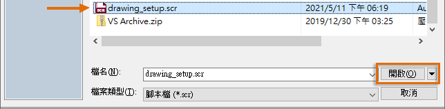 在「選取腳本檔」對話方塊中,瀏覽到 drawing_setup.scr 檔並加以選取。