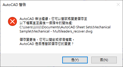 嘗試開啟圖檔時,AutoCAD 可能會遇到導致失敗而無法開啟圖面的問題。在這些情況下,您無法執行 AUDIT 指令並檢查圖面是否有錯誤。您要改用「修復圖檔」功能,此功能會在開啟圖面時對圖面中的物件執行檢核,並在遇到錯誤時修復偵測到的所有錯誤。