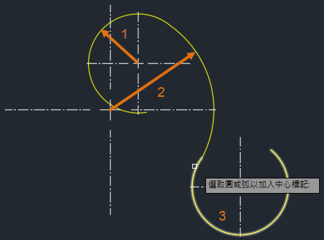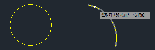 如果是弧或圓,您可能用過 DIMCENTER 指令,但可能會受到限制。或者,您可以為中心標記建立圖塊,並依需要調整圖塊比例,但此圖塊也有其限制,而且可能很費時。