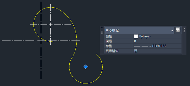 我們使用 CENTERLTYPE 系統變數設定中心標記和中心線的預設線型。依預設,用於中心標記和中心線的線型為 CENTER2。