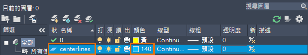 建立中心線或中心標記後,無論目前圖層為何,都會將其放置在中心線圖層上。