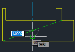 中心線會將外觀交點延伸超過 CENTEREXE 系統變數中指定的值 (在此例中為 1 個單位)。