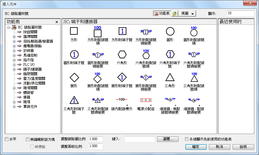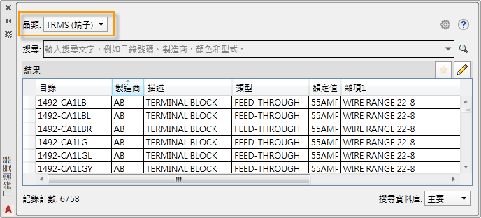 使用「端子排編輯器」可管理整個端子排。您可以變更目錄指定、加入跳線、關聯端子、加入備用項和配件、插入面板端子排等等。在後面的〈面板配置〉主題中,您將瞭解如何使用「端子排編輯器」。 查找