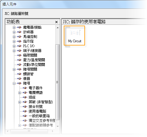 下次您需要該電路時,即可從圖示功能表插入該電路。 查找