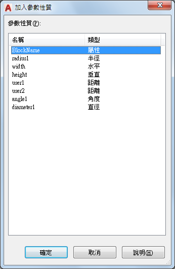 顯示尺度約束參數、使用者參數、舊式參數和屬性定義的清單。