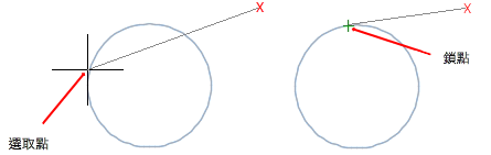 鎖點至弧、圓、橢圓、橢圓弧、聚合線弧或雲形線的相切點。