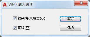 將物件做為線架構匯入。如果清除這個選項,物件將做為填滿物件匯入。