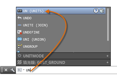 請注意,當您開始鍵入指令時,指令就會自動完成。如果有下面範例所示的其他情形,您可以透過按一下,或者先使用方向鍵,然後再按 Enter 或空格鍵加以選擇。