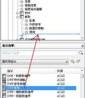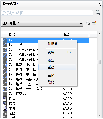 使用自訂使用者介面 (CUI) 編輯器建立、編輯或移除指令。您也可以將新指令加入下拉式功能表、工具列和功能區面板,或進行複製以顯示在多個位置。