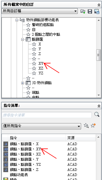 篩選清單以便只展示已加入至載入之自訂檔的使用者定義指令。