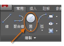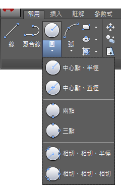 或者,您也可以在指令視窗中輸入 CIRCLE 或 C,並按一下以選取一個選項。如果執行此作業,您可以指定中心點,或者按一下其中一個亮顯指令選項,如下所示。