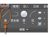 在 AutoCAD 圖面中,線是最基本且最常用的物件。若要繪製線,請按一下「線」工具。