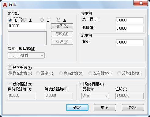 指定定位停駐、縮排、控制段落對齊方式、段落間距和段落行距。