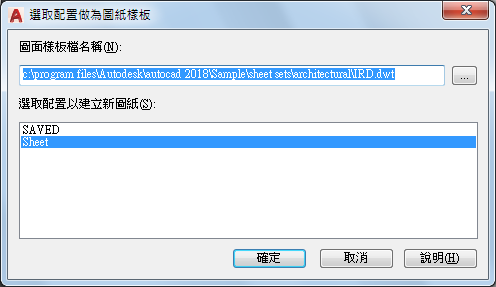 「選取配置做為圖紙樣板」對話方塊