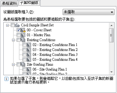 「子集和圖紙」頁籤 (「圖紙列表」對話方塊)