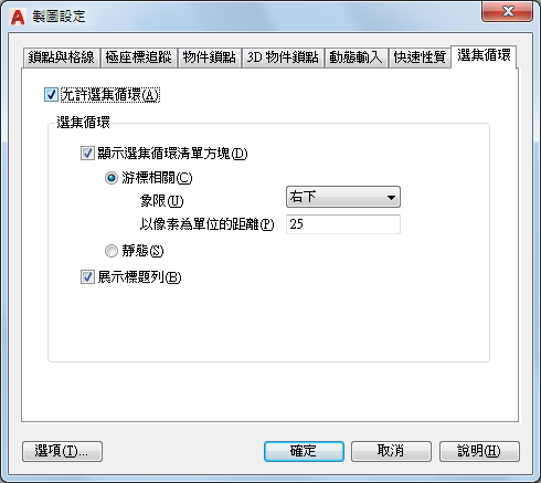 控制是否打開選集循環功能。(SELECTIONCYCLING 系統變數)。