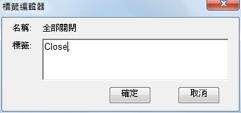 在「標籤編輯器」對話方塊的「標籤」方塊中,輸入代表指令標籤的文字。