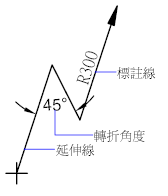 標註不能準確表示實際測量值時,常會在線性標註中加入轉折線。典型情況是實際測量值小於所需的值。