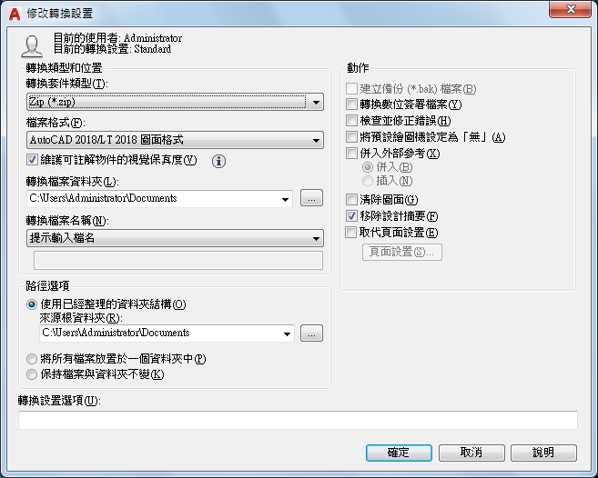 在轉換期間建立備份 (.bak) 檔。此選項僅在將「轉換組件類型」設定為「現地」(覆蓋檔案) 時處於作用中。