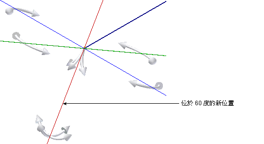 若要使用「旋轉控點」,可按一下指向所需角度位置的箭頭,並將其拖曳至所需的位置。會根據 3D 角度鎖點值以規則的增量進行鎖點。此值在「工具」頁籤 「選項」面板 「文件設定」 「塑型」頁籤上進行設定。