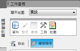 - 在 build_map1.dwg 檔案中,確保已在「顯示管理員」的功能表列上選取「繪製順序」。