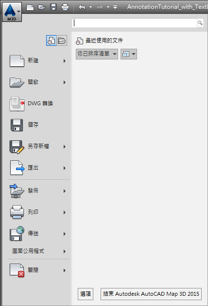 若要繼續導覽 AutoCAD Map 3D,請移往〈工作區〉
