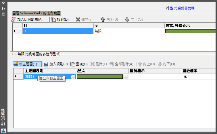 按一下「新主題圖」以為「Parcels」圖層定義主題圖。