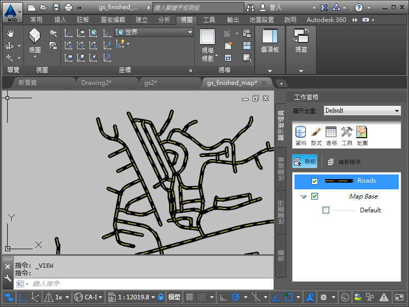 「儲存」。 請注意,此地圖檔與 AutoCAD 圖面一樣,使用檔案副檔名 .dwg。兩種檔案類型均使用相同的基本檔案格式。