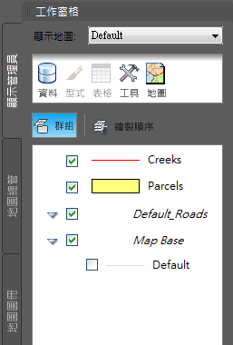 「顯示管理員」頁籤展示目前地圖中的圖層。